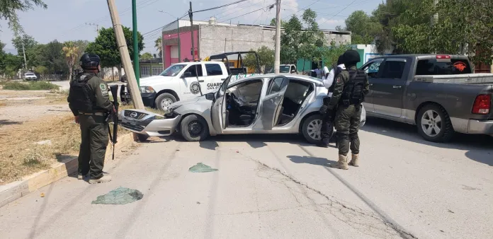 Al arribar a la intersección de la calle Juan Álvarez en la colonia La Dichosa se tiene contacto visual con el vehículo en mención impactando contra un poste de concreto el mismo con las puertas delanteras y traseras abiertas y sin ningún ocupante en su interior.