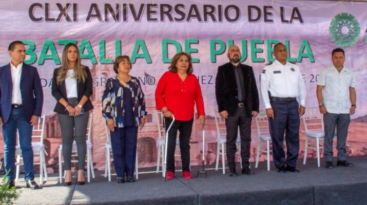 La alcaldesa Leonor Noyola Cervantes, conmemoró el 161 aniversario de la Batalla de Puebla con un acto cívico realizado en el Jardín Principal del municipio, al cual se dieron cita integrantes del gabinete municipal.