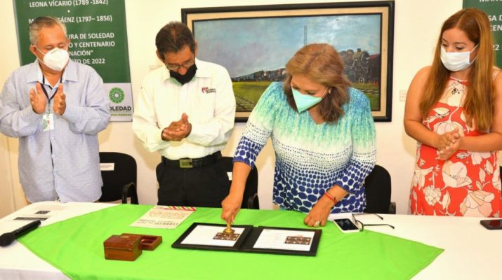 La alcaldesa de Soledad de Graciano Sánchez, Leonor Noyola Cervantes encabezó el evento de cancelación de la estampilla postal “Heroínas de la Independencia”, Leona Vicario (1789-1842), Manuela Sáenz (1797-1856) realizado este lunes en la Casa de la Cultura de este municipio.