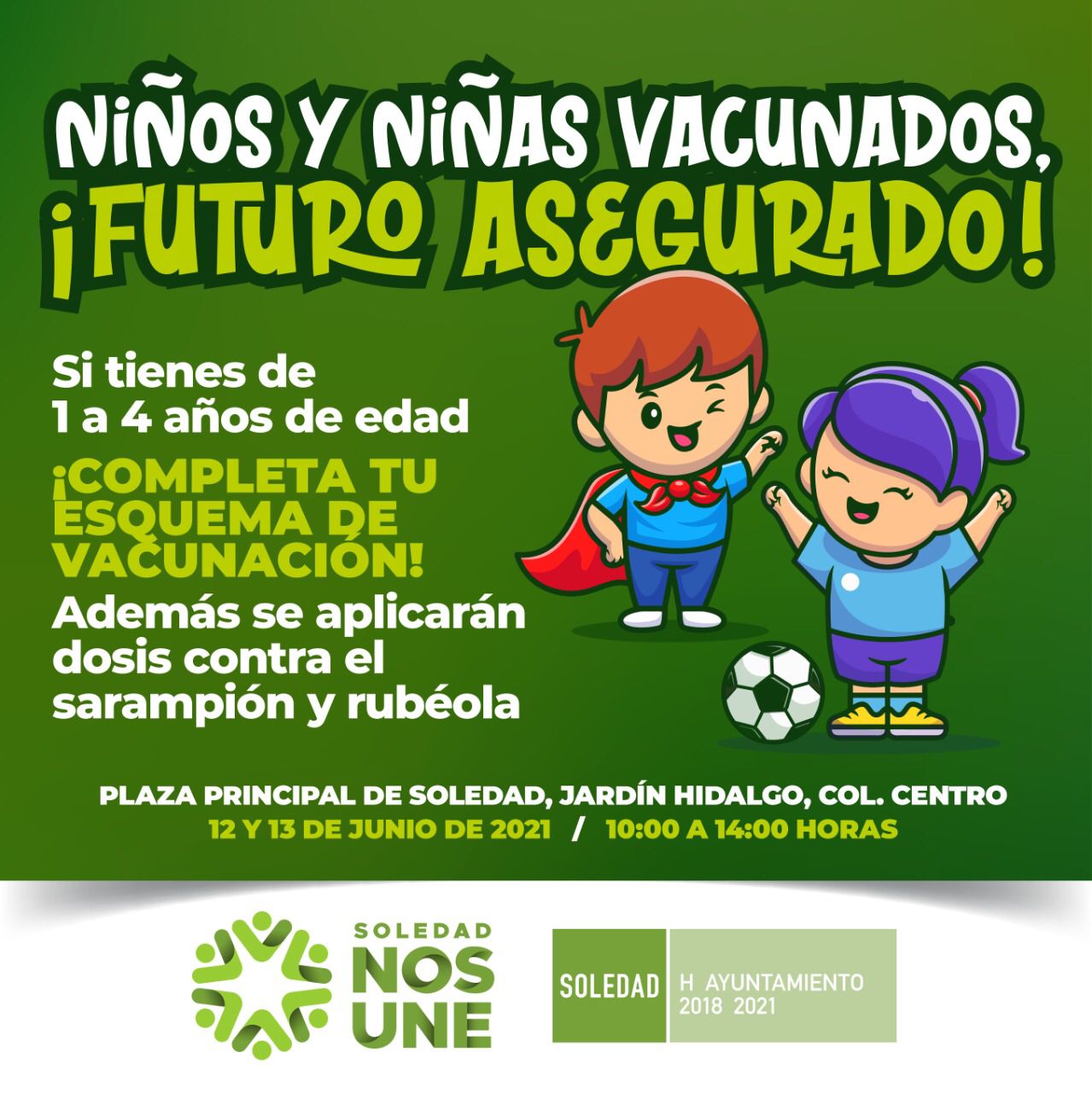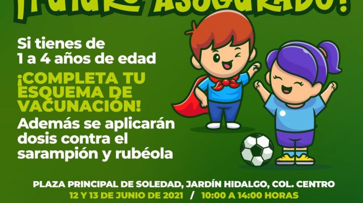 El Ayuntamiento de Soledad de Graciano Sánchez en coordinación con los Servicios de Salud en el Estado, informa que se llevará a cabo una campaña de vacunación que tendrá como sede el jardín principal de este Municipio.