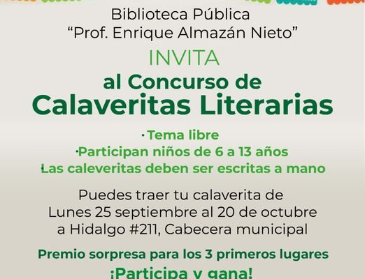 “Queremos que sus voces se escuchen a través de sus versos y compartan su talento con la comunidad; esperamos ansiosamente recibir sus calaveritas y celebrar juntos este hermoso tributo a nuestras tradiciones y al poder de la literatura”, señaló.