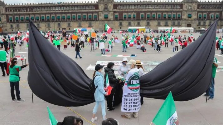 Opositores al Gobierno del Presidente de México, Andrés Manuel López Obrador, se manifestaron este domingo y desplegaron un crespón de luto en el Zócalo de Ciudad de México por los más de 50 mil decesos que ha provocado la pandemia de COVID-19 en este país.