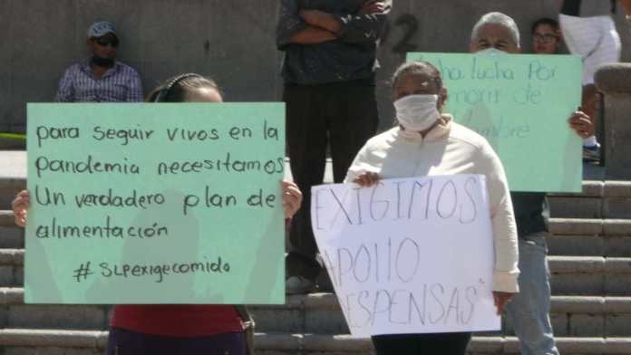 Martín Salazar Morales, vecino representante, dijo, «venimos de varias colonias de la capital potosina, pedimos lo más esencial para la gente pobre, comida, despensas, un programa alimentario para las familias», indicó.
