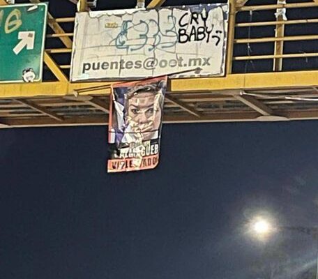 Con lonas en la avenida Salvador Nava a la altura de Plaza Citalella, inconformes con el trabajo de Guadalupe Almaguer Pardo, actual directora de la instancia de la Mujer de la capital potosina la denuncian como violentadora.