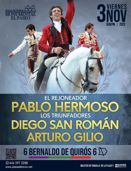 La empresa de la plaza de Toros Fermín Rivera- El Paseo dio a conocer el cartel completo de la que se supone será la última actuación en la capital potosina de Pablo Hermoso de Mendoza.