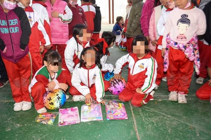 – Durante la visita se entregaron dulces y juguetes a las y los estudiantes, que con sorpresa vieron llegar a los Reyes Magos.