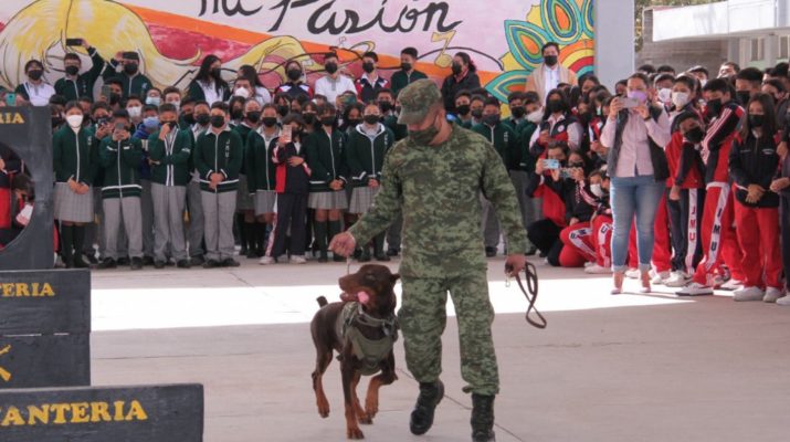 Posteriormente y ante la presencia de la comunidad educativa, personal de la doceava Zona Militar realizó una demostración de binomios caninos en la que los animalitos demostraron sus habilidades que poseen en tareas para velar por la seguridad de las y los ciudadanos.