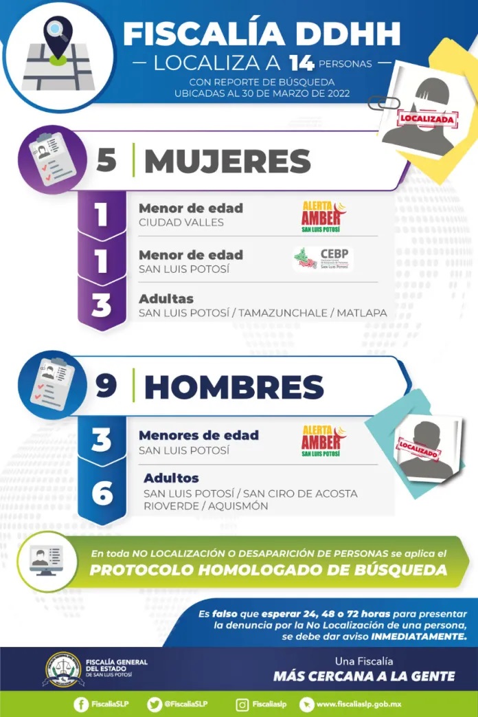 Arturo Gómez Hernández, Fiscal Especializado en Derechos Humanos de la Fiscalía General del Estado (FGE), informó que ayer, 30 de marzo, mediante trabajos coordinados con la Policía de Investigación (PDI), fue posible dar con el paradero de 14 personas que habían sido reportadas como no localizadas.