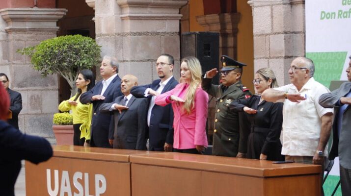 Al final del evento, las y los invitados rindieron homenaje a Rafael Nieto Compeán con una guardia de honor en su busto ubicado en la escalinata principal del Edificio Central de la UASLP.