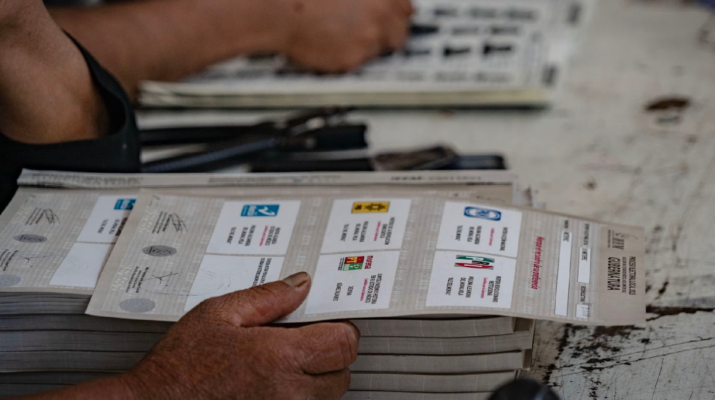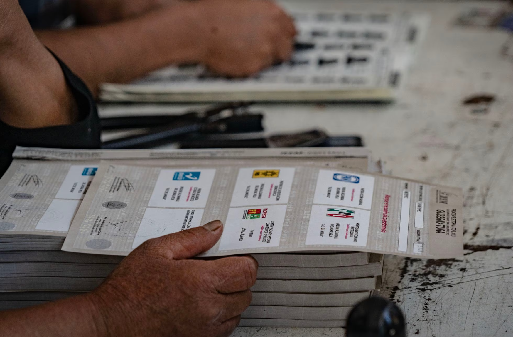 Los ciudadanos del Estado de México elegirán a su primera gobernadora de entre la morenista Delfina Gómez y la priista Alejandra del Moral. El Partido Revolucionario Institucional (PRI) ha gobernado por más de un siglo esta entidad. Morena, el partido del presidente Andrés Manuel López Obrador, intentará romper la hegemonía del PRI en uno de los estados más poblados del país. En la imagen, detalle de una boleta electoral en una casilla en Metepec, en el Estado de México.