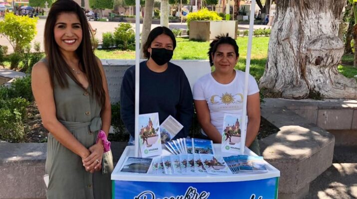 Con el objetivo de promover los sitios turísticos que puedan ser de interés para las y los visitantes que arriben en esta temporada de Semana Santa al municipio de Soledad de Graciano Sánchez, la Dirección de Turismo a cargo de Ocari Carreón Hernández, instaló un módulo de información turística en el jardín principal de Soledad de Graciano Sánchez.