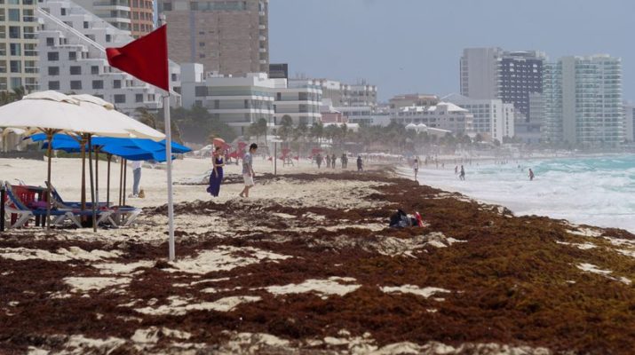 Alerta roja en 24 playas de la Riviera Maya por la presencia excesiva de sargazo, que es abundante en otras 20. Esta alga invasiva se ha convertido ya, por obra del cambio climático, en una de las protagonistas de las vacaciones en el paraíso mexicano que tantos recursos económicos proporciona al país. La red de monitoreo de Quintana Roo ha actualizado en la mañana de este jueves sus datos, que no son nada buenos cuando se avecina el verano. En playas como Tulum o Rivera Cancún y desde Punta Mulas a Punta Celarain los puntos rojos indican la presencia alarmante del alga, que transforma la orilla del mar en un intransitable bosque marino. Se acabó el azul transparente.