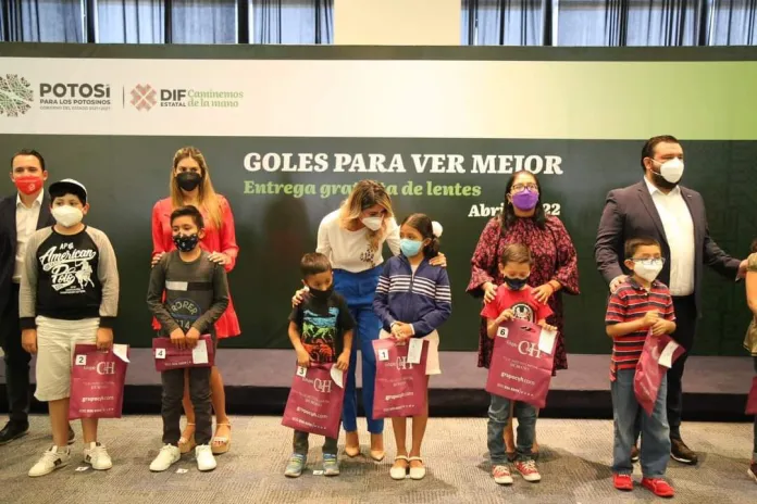 En este programa suman esfuerzos el DIF Estatal, el equipo profesional de fútbol local Atlético de San Luis y la fundación CyH, que de manera coordinada y previa realizaron los exámenes de la vista; la entrega gratuita de lentes a las y los menores de edad se realizó en el Centro de Convenciones, informó Ruth González Silva, presidenta honoraria del DIF.