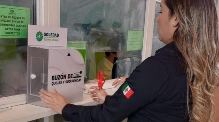Para mejorar la atención a la ciudadanía que acude a las diferentes áreas municipales a solicitar trámites o servicios diversos, la Contraloría Interna del Ayuntamiento de Soledad de Graciano Sánchez inició la instalación de buzones de quejas y sugerencias en los que las y los usuarios pueden aportar opiniones que ayuden a mejorar el desempeño de las y los servidores públicos.