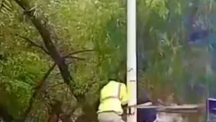 Este jueves, oficiales de la Secretaría de Seguridad y Protección Ciudadana de la Capital realizaron un heroico rescate al salvar a un motociclista que estuvo a punto de ser arrastrado por una fuerte corriente de agua.