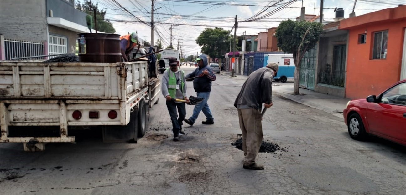 Las cuadrillas de trabajadores realizan el bacheo en calles programadas en donde se ha detectado un deterioro del pavimento, pero además se atiende puntualmente cada uno de los reportes ciudadanos que se hacen llegar a esta área, como en el caso de la limpieza y mantenimiento en las áreas verdes de la colonia Puerta Real.