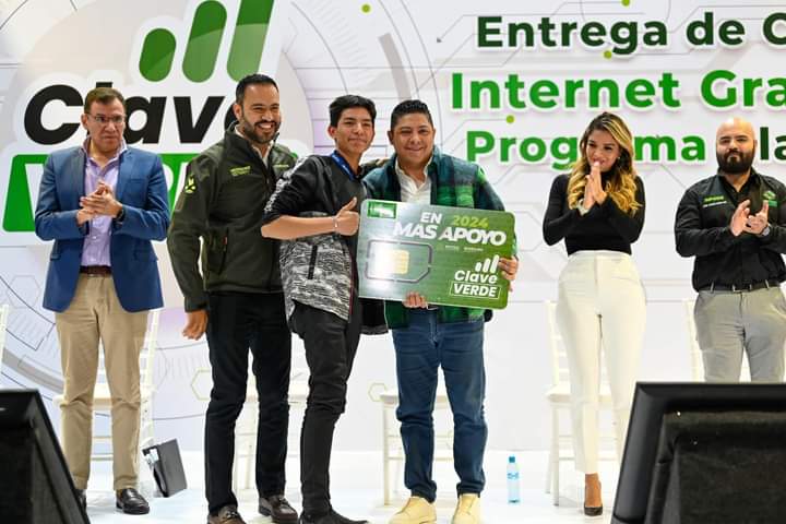 El Gobernador de San Luis Potosí, Ricardo Gallardo Cardona arrancó el programa “Clave Verde”, que dotará a las y los jóvenes estudiantes de internet gratuito mediante un chip de telefonía celular, que en una primera etapa beneficiará 75 mil familias y con una meta este 2024 de llegar a 200 mil alumnas y alumnos, convirtiéndose en un referente nacional y reafirmando su apoyo a la educación.