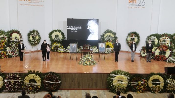 El Gobernador del Estado, Juan Manuel Carreras López, asistió al homenaje luctuoso del Secretario General de la Sección 26 del Sindicato Nacional de Trabajadores de la Educación (SNTE), Alejo Rivera Ávila, reconoció al líder sindical como un profesor incansable que siempre veló por un trato justo para sus compañeros y mejores condiciones educativas para las y los estudiantes.