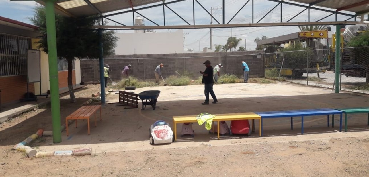 Al respecto, la directora del área, Dolores Eliza García Román, informó que aunque no hay clases presenciales, no se deja de lado la atención a las escuelas del municipio, “los directores de centros educativos nos solicitan el apoyo para mantener en óptimas condiciones sus instalaciones”.