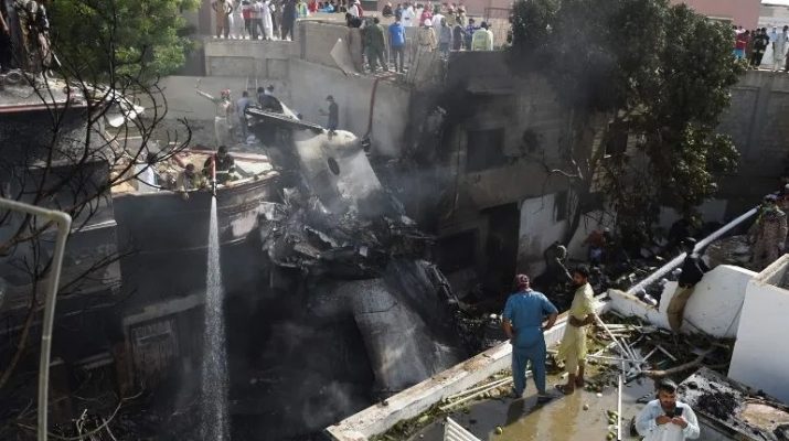 El avión la aerolínea estatal se desplomó sobre un vecindario abarrotado en el borde del aeropuerto en la ciudad de Karachi