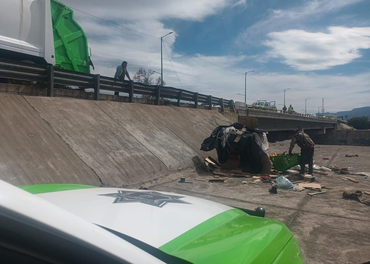 Policías adscritos a Tránsito Vial, desplegaron labores de acordonamiento en el carril de la vialidad, para introducir la unidad a la zona de camellón, debido a que la denuncia especificaba el presunto estaba en condición de indigencia y pernoctaba de manera improvisada en el lugar.