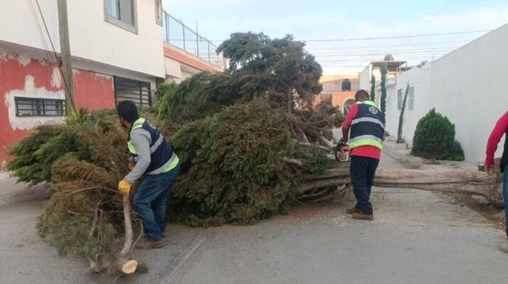 El Gobierno Municipal de Soledad de Graciano Sánchez, a través de la Coordinación de Protección Civil y la Dirección de Parques y Jardines, atendió el reporte de cinco árboles caídos en diferentes zonas del municipio, derivado de las fuertes ráfagas de viento de hasta 60 km/h que se registraron el pasado lunes.